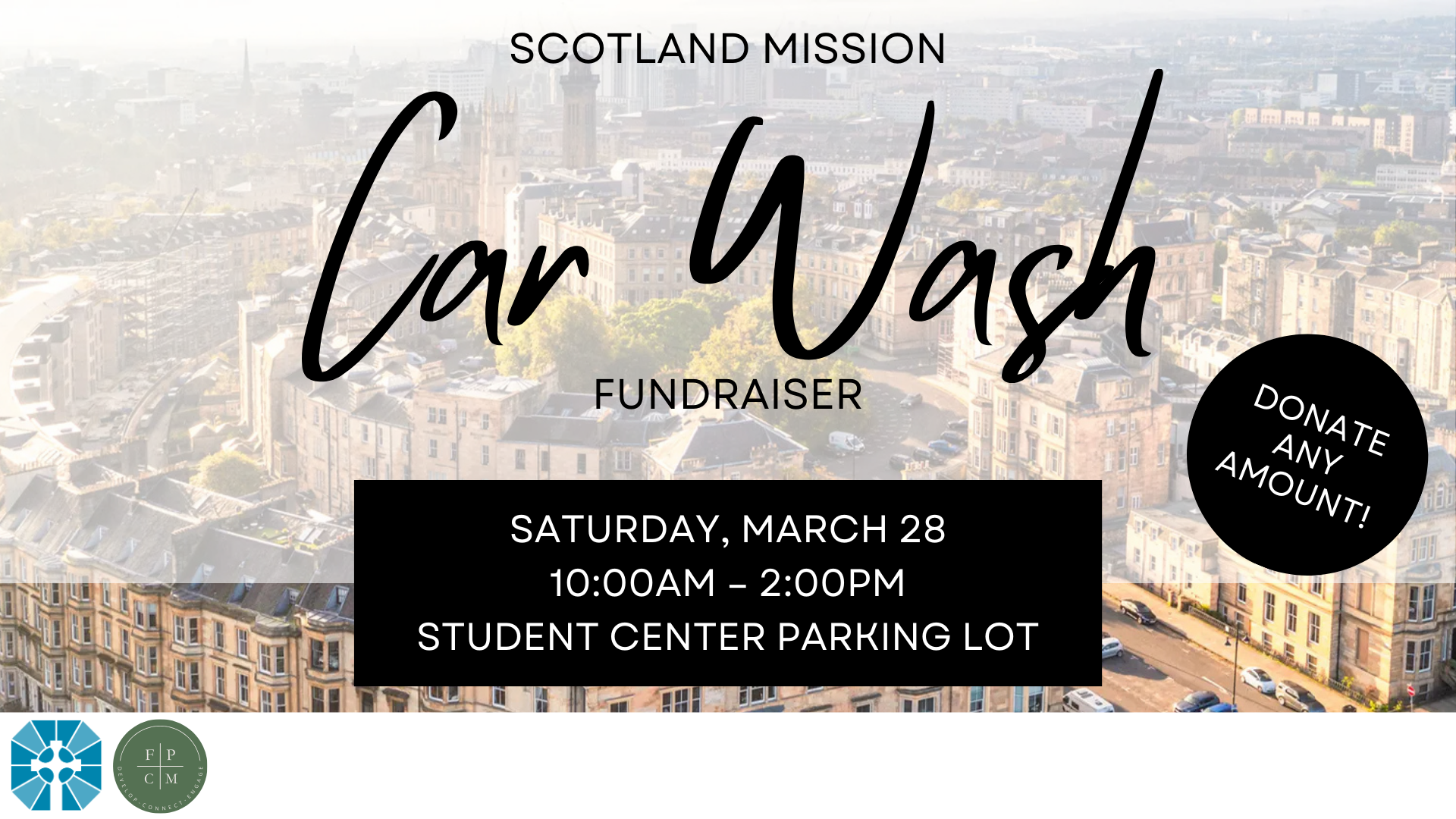 Come by the Student Center parking lot on Saturday, March 28, between 10:00am & 2:00pm to get your car squeaky clean! Donations of any amount are accepted and will go towards the College Ministry Scotland Mission Trip in May.