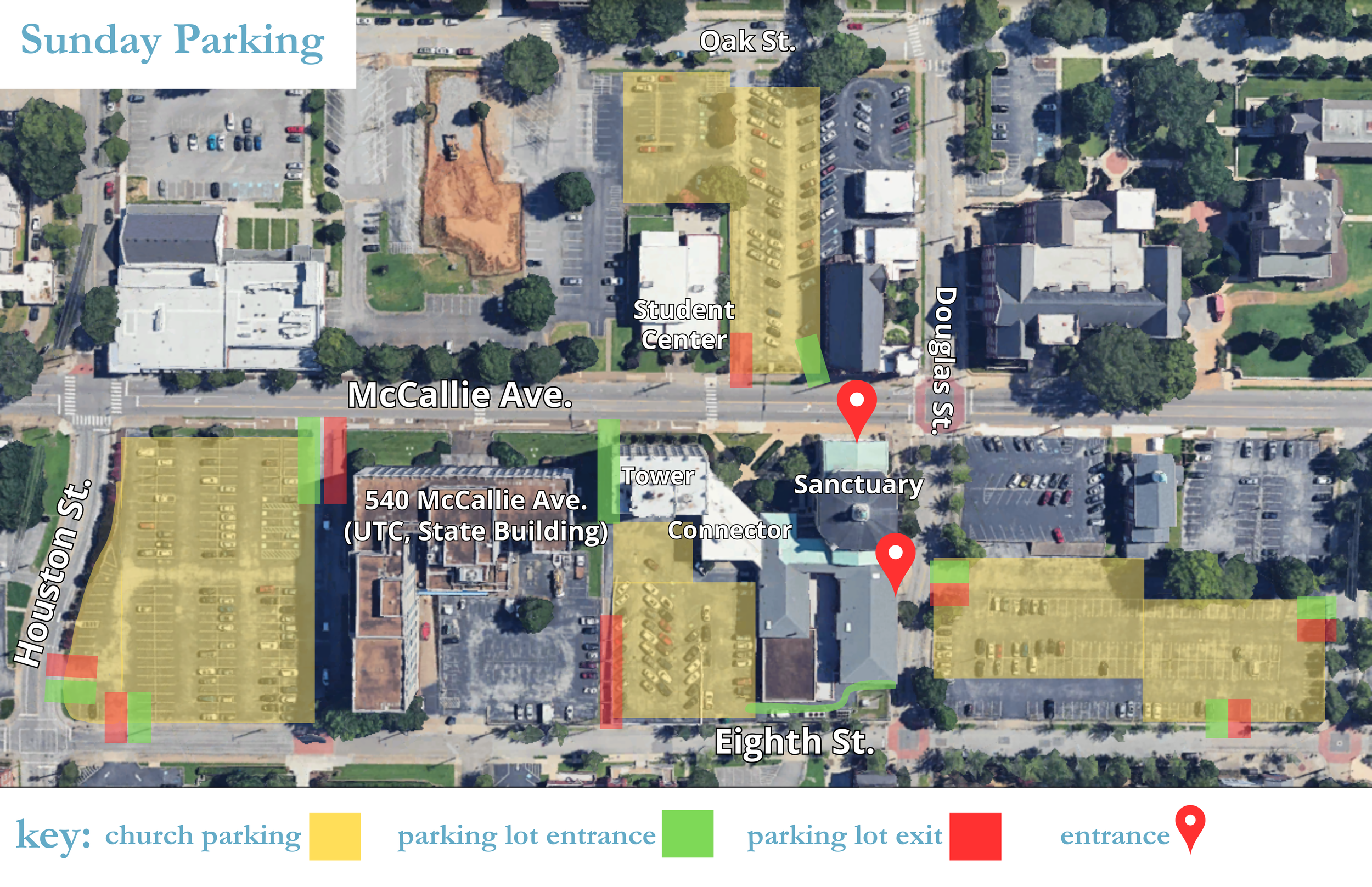 McCallie 540: enter from McCallie Ave., Houston St., or Eighth St.