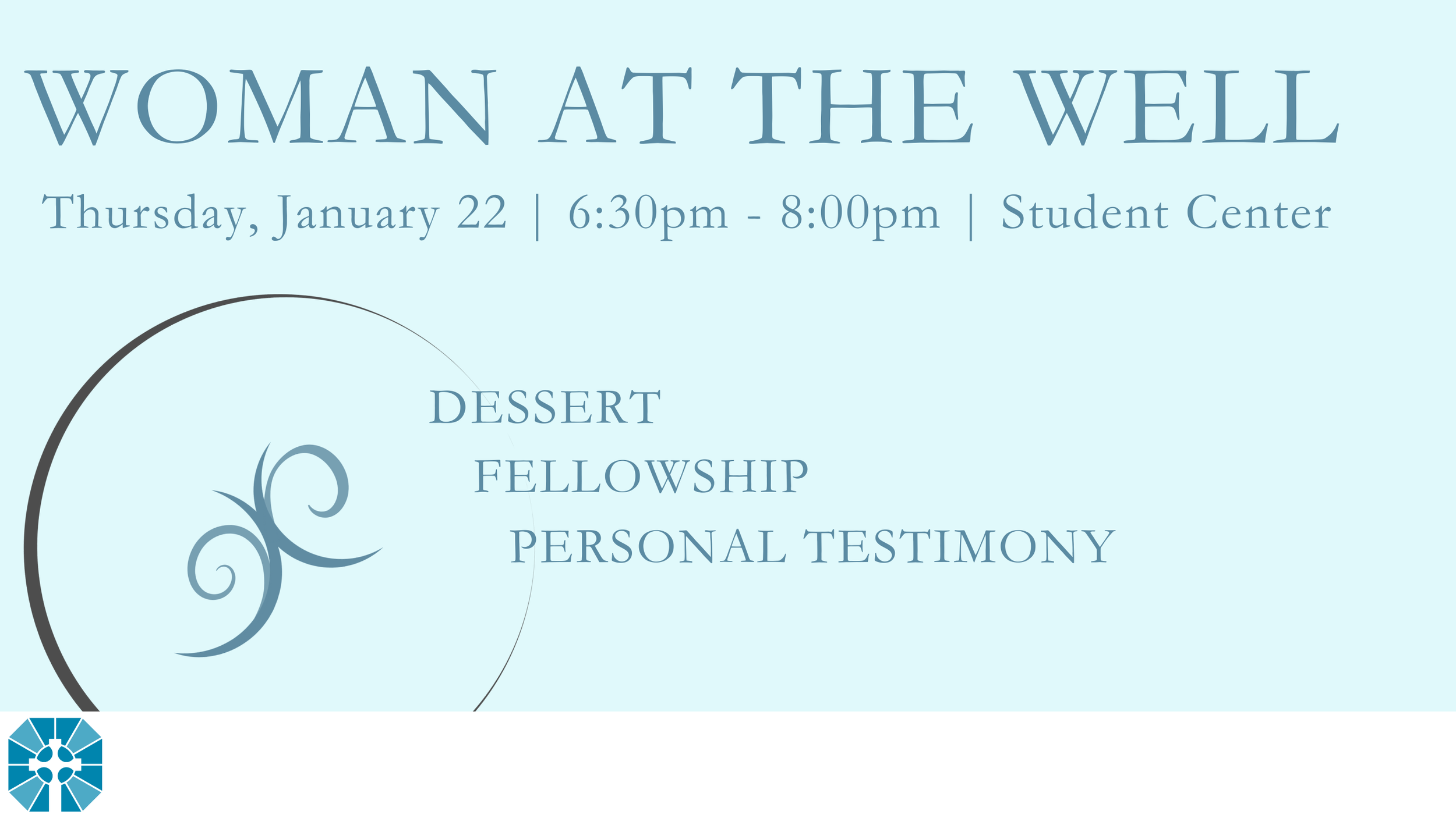 Women are invited Thursday, January 22, from 6:30pm - 8:00pm in the Student Center for a fun evening of fellowship, connection, dessert (ice cream!), and a testimony from Co-Director of Youth Ministry Isabella Bridges!